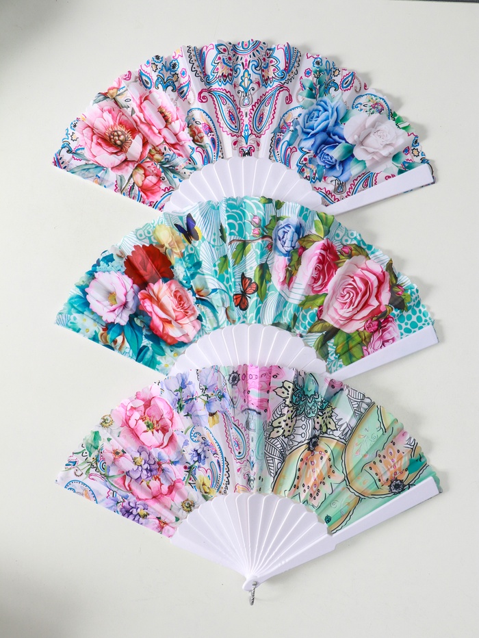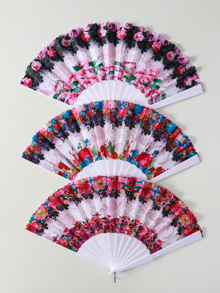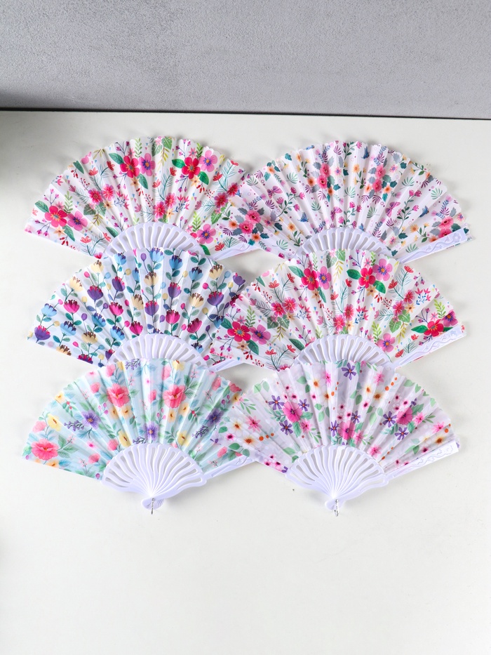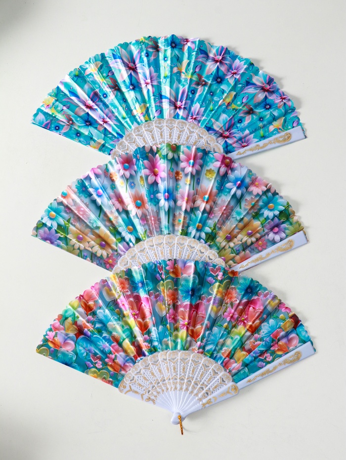 Веер складной «Россыпь цветов», широкие лопасти, 23 см, МИКС