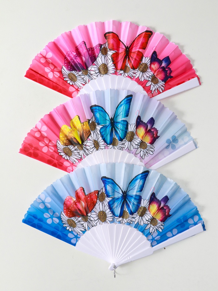 Веер складной «Ромашки и бабочки», широкие лопасти, 23 см, МИКС