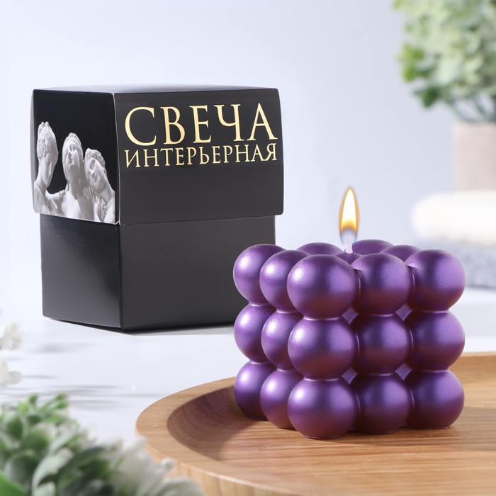 Свеча декоративная «Баблс куб», 5×5×5 см, фиолетовый, в коробке