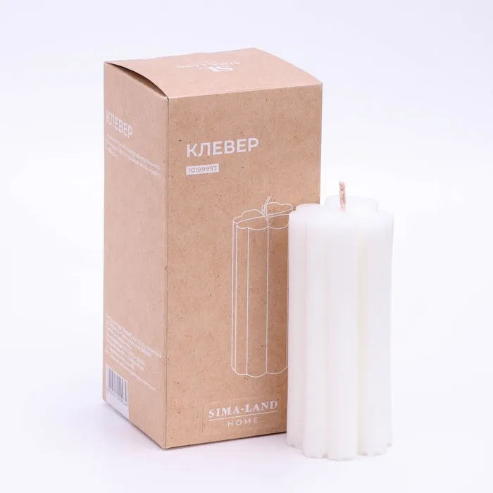 Свеча-цилиндр "Четырехлистник",4,5х10,5, пальмовый воск, белая, 6 ч Sima Home