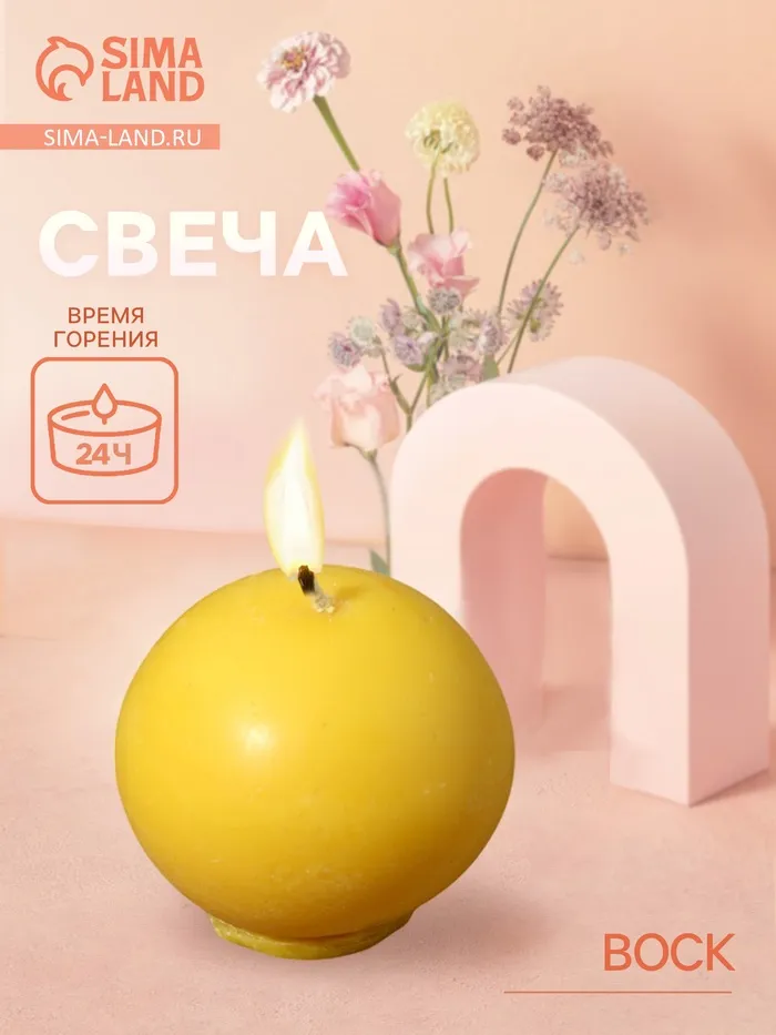 Свеча фигурная формовая «Шар», 5×5×7.5 см, соевый воск, МИКС
