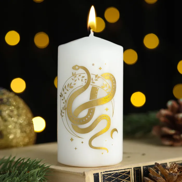 Свеча-цилиндр «Золотая змея», 5×10 см, белая