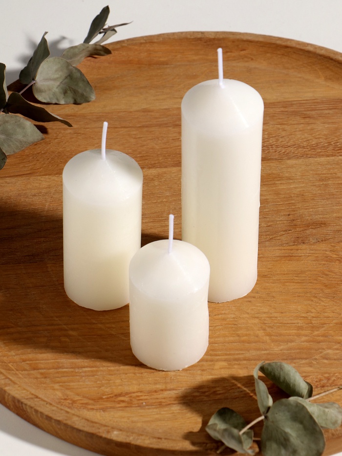 Набор свечей «Столбики белые», 3 шт., d=4.5 см, h=7; 10 и 15 см, 9×8.5×15 см