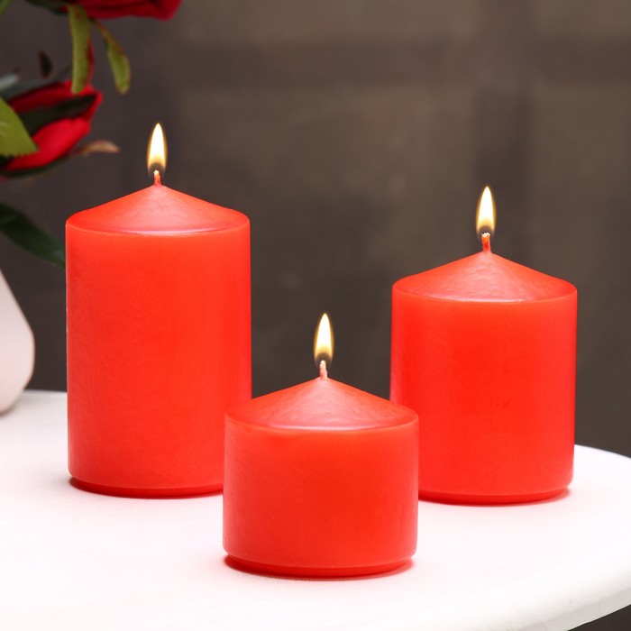 Набор свечей-цилиндров 3 шт.: 6×11 см, 6×8 см, 6×6.5 см, красный