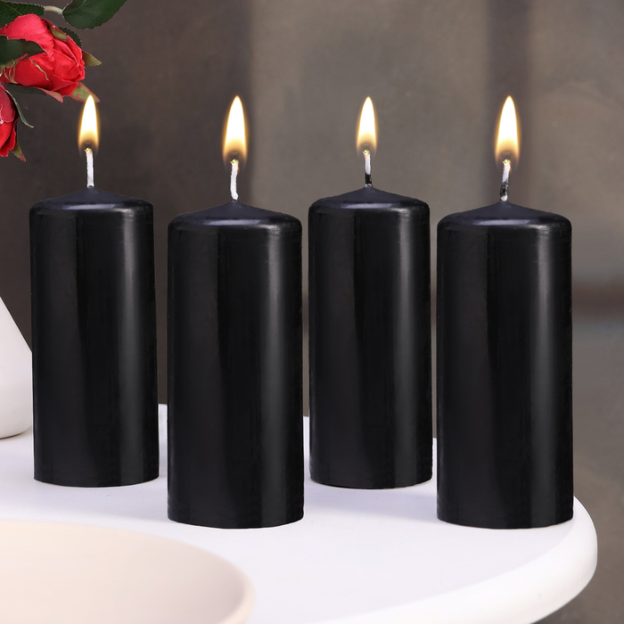 Свеча-цилиндр, 5×11.5 см, набор 4 шт., чёрная
