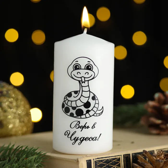 Свеча-цилиндр «Чёрная змея», 5×10 см, белая