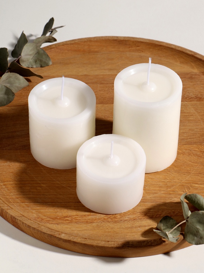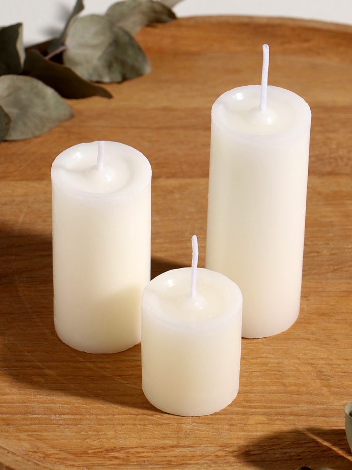 Набор свечей «Столбики белые», 3 шт., d=7.5 см, h=4.8; 7.5 и 10 см, 22.5×7.5×10 см