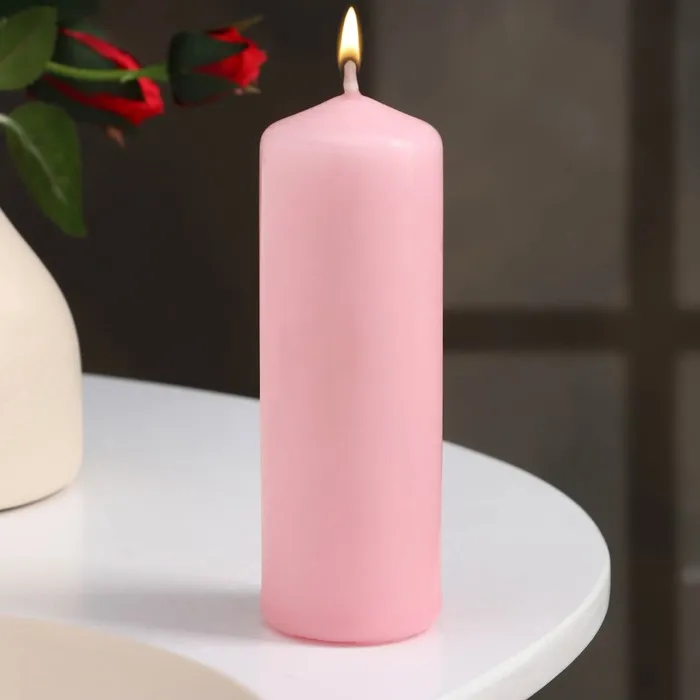 Свеча - цилиндр, 4×12 см, 15 ч, светло-розовая