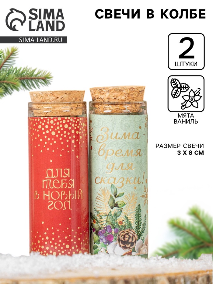 Свеча новогодняя, набор 2 шт., аромат мята и ваниль, 3×3×8 см
