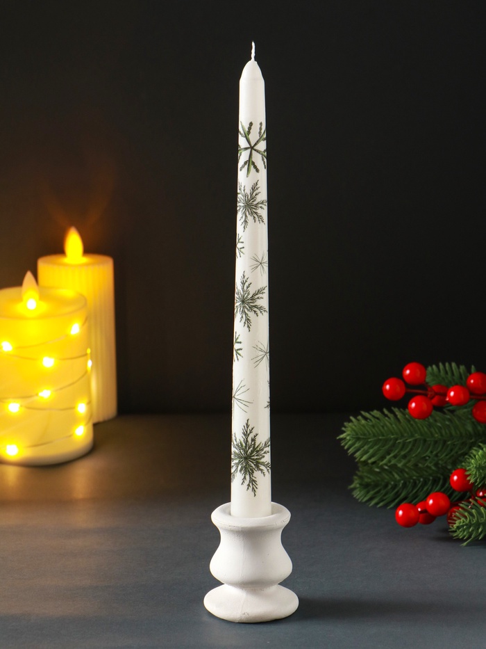 Свеча античная «Снежинки новогодние», 255×22 мм, с декором