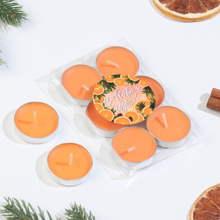 Свечи чайные ароматические, 6 шт, апельсин, Новый год
