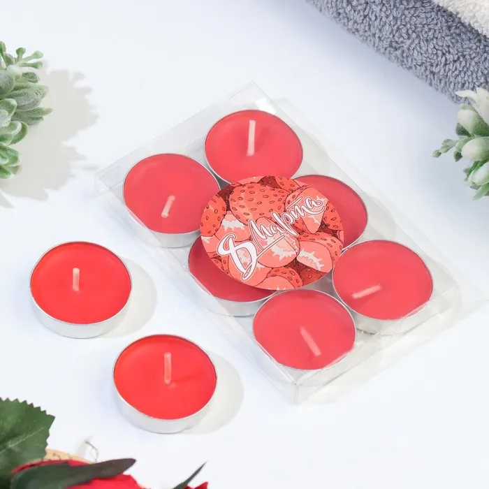 Набор свечей чайных ароматических, 6 шт, клубника, 8 марта