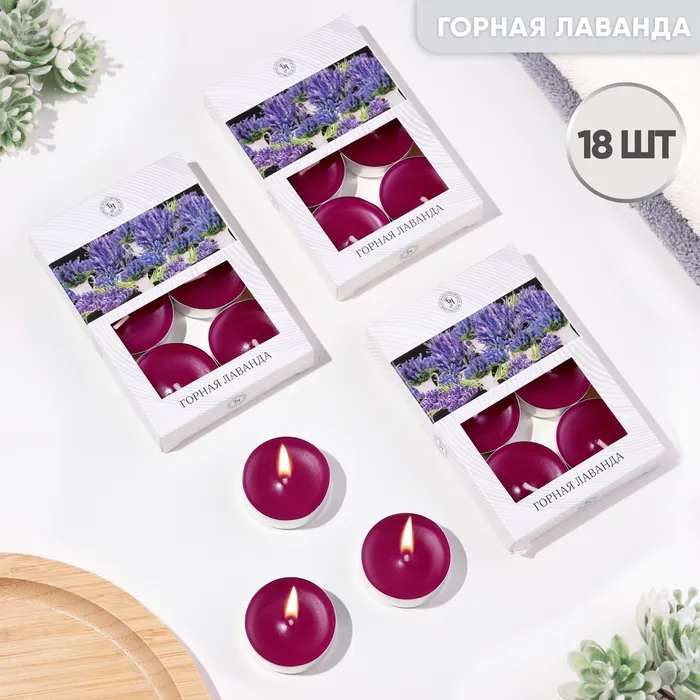 Свечи чайные ароматизированные "Горная лаванда" в подарочных коробках, 18 шт