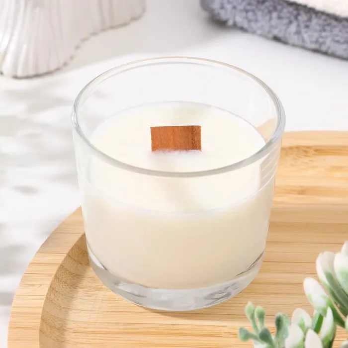 Свеча из соевого воска в стакане с деревянным фитилем "Весенний ландыш", 65 гр