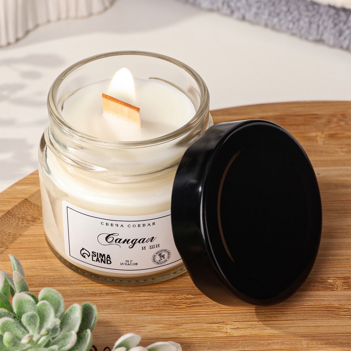 Свеча ароматическая из соевого воска в банке, 75 г, сандал и ши