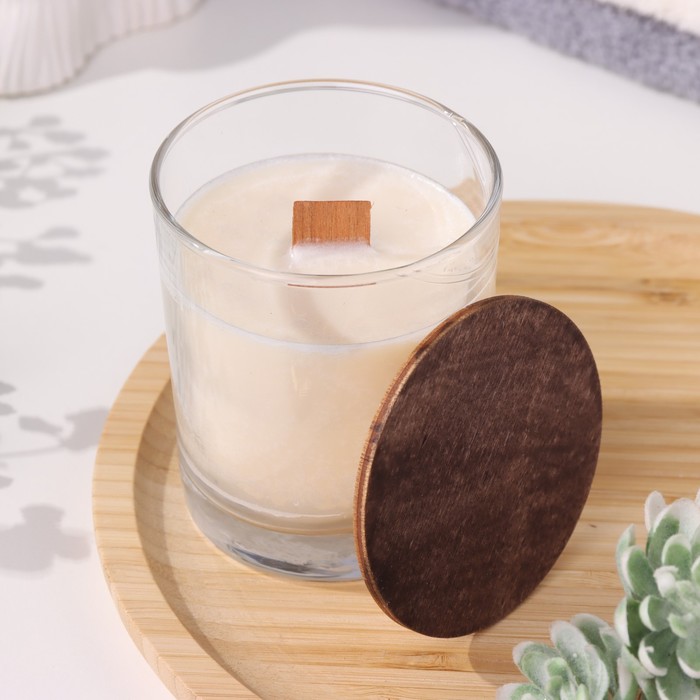 Свеча из соевого воска в стакане с деревянным фитилем и крышкой "Имбирное печенье", 110 гр