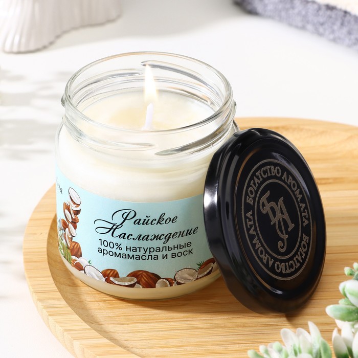 Ароматическая свеча натуральная «Райское наслаждение», эко, 7×7.5 см, 14 ч, кокос