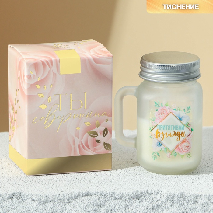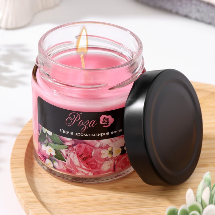 Свеча ароматическая из соевого воска в банке, 75 г, розовое шампанское