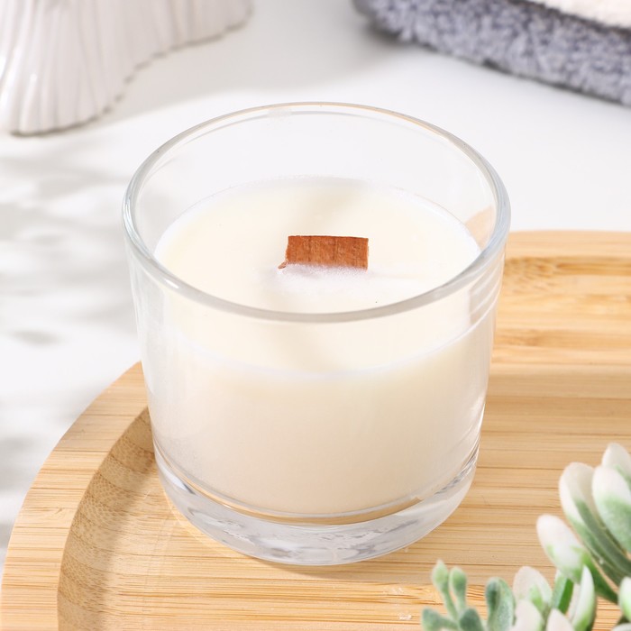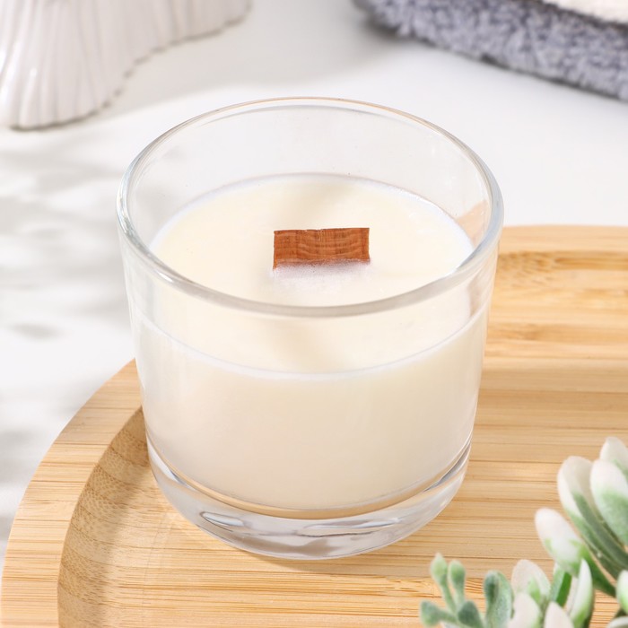 Свеча из соевого воска в стакане с деревянным фитилем "Французская ваниль", 65 гр