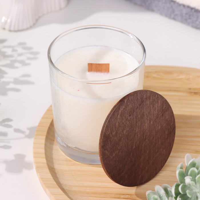 Свеча из соевого воска в стакане с деревянным фитилем "Сандаловое дерево", 65 гр