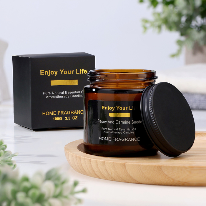 Свеча ароматическая из соевого воска в банке, 150 г, слива и кашемир