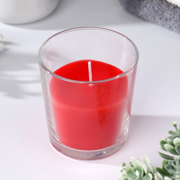 Ароматическая свеча в стакане 7×5.5 см, цветы, красный