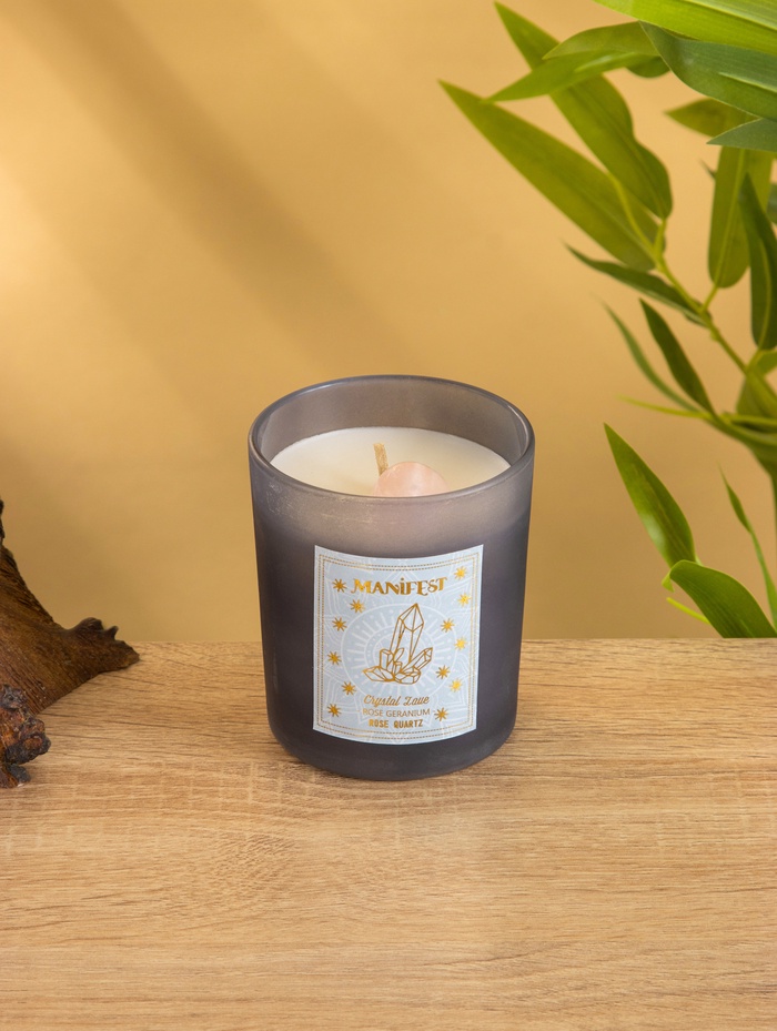 Свеча в стекле с камнем Manifest, роза, 200 г, соевый воск