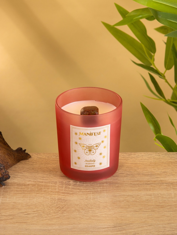 Свеча в стекле с камнем Manifest, икебана, 200 г, соевый воск
