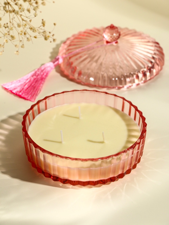 Ароматическая свеча в шкатулке «Розовая», 3 фитиля, сладкий апельсин, 13.3×13.3×9.5 см