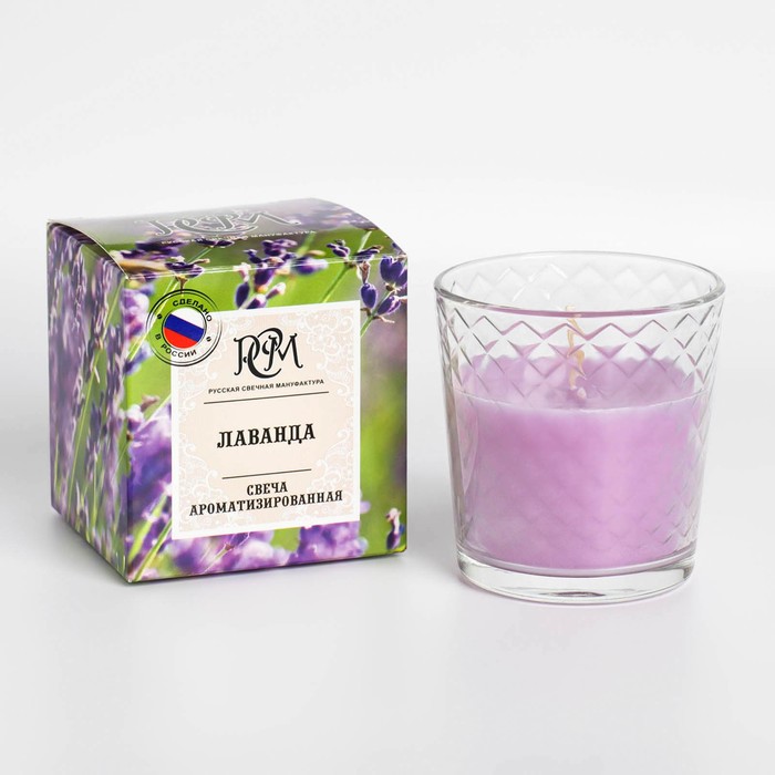 Ароматическая свеча в стакане «Лаванда», подарочная упаковка, 8×8.5 см, 30 ч