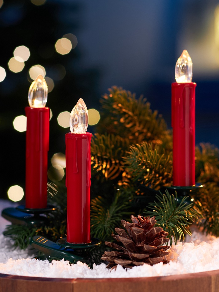 Светодиодные «Свечи на прищепках красные» 11 см, набор 10 шт., 10 LED, от батареек ААх10, пульт, свечение тёплое белое