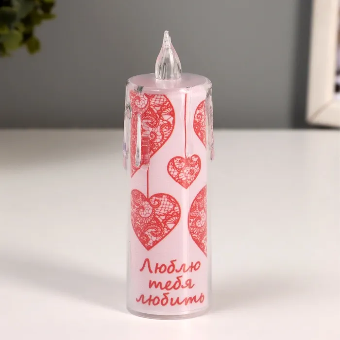 Светодиодная свеча, ночник LED RISALUX «Свидание», 3×AG13, розовый, 5×5×11 см
