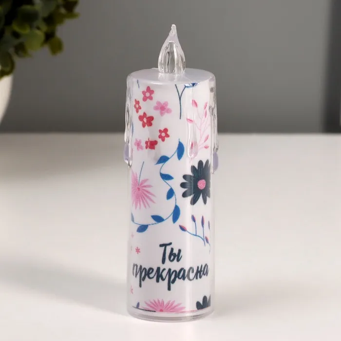 Свеча светодиодная с цветами, мод. СВ-23 «Цветы», 5 х 3,8 см.