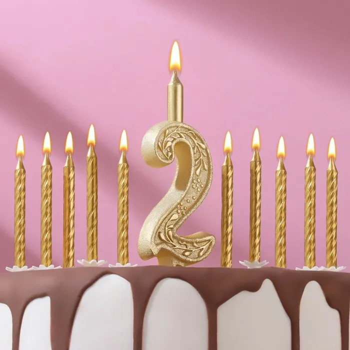 Свечи для торта «Цифра 2», классические, 10 шт., золото, 10 см