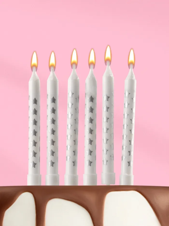 Свечи для торта «Серебряные звезды», белый металлик, 7.5 см, 6 шт.