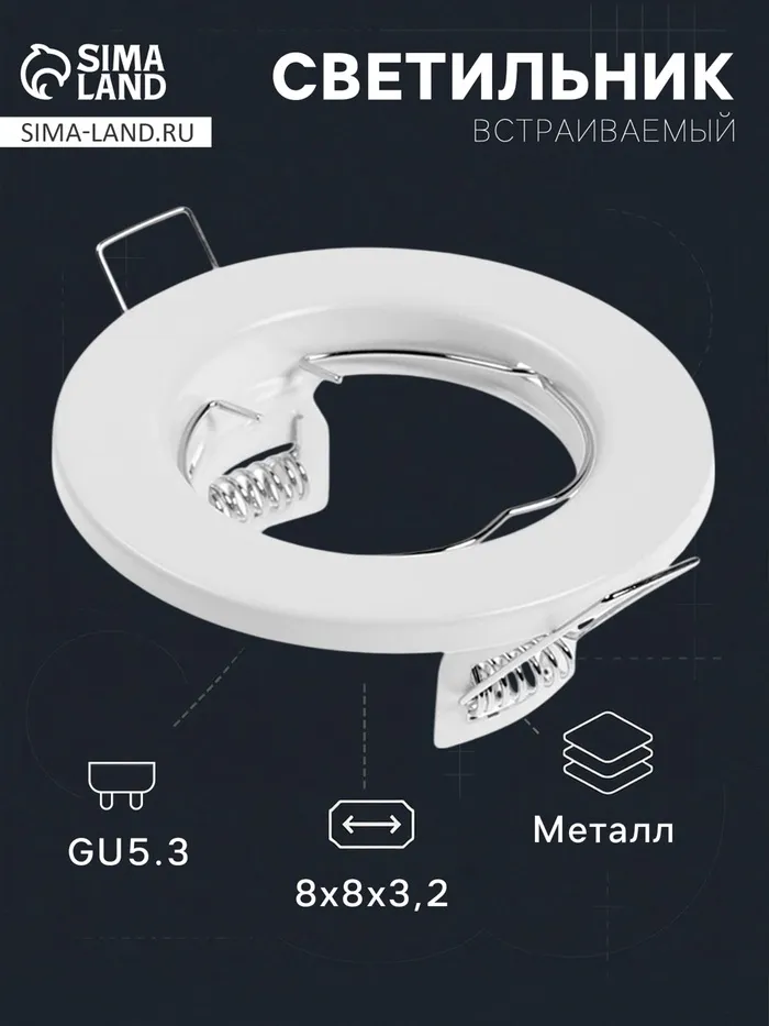 Светильник встраиваемый под лампу MR-16, круглый, металлический, белый