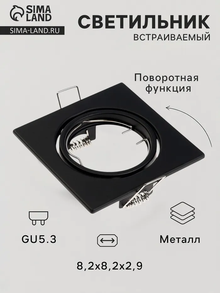 Светильник встраиваемый под лампу MR-16, поворотный, квадратный, металлический, чёрный