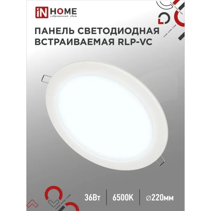 Панель светодиодная IN HOME RLP-VC, 36 Вт, 230 В, 6500 К, 2880 Лм, 220 мм, круглая, белая