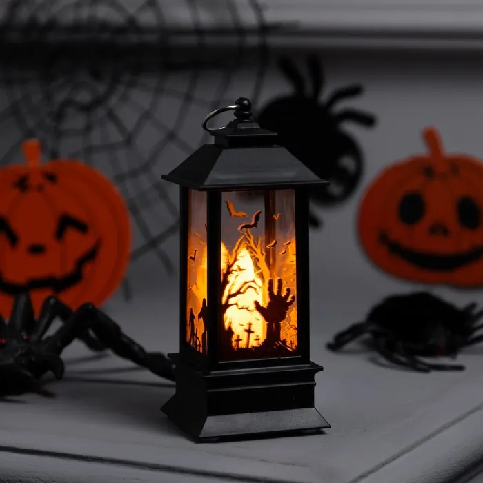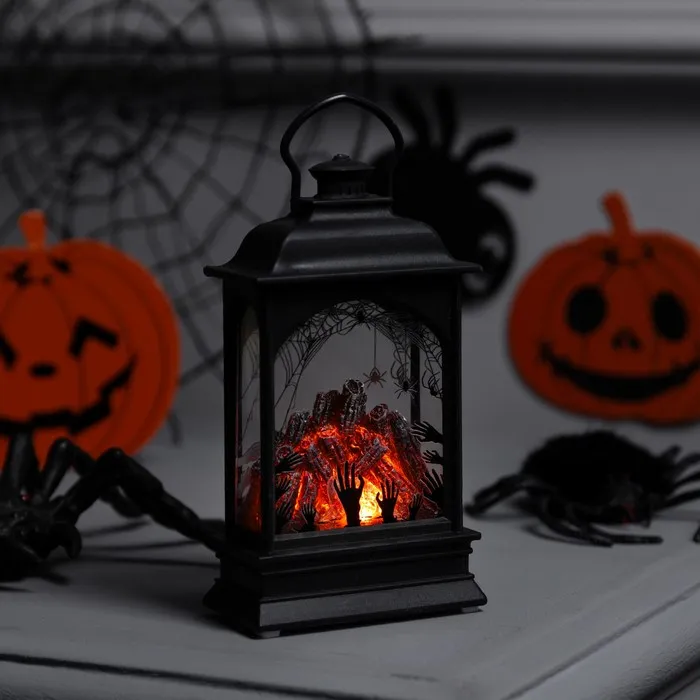 Светодиодная фигура «Фонарь черный с привидением» 5 × 12 × 5 см, пластик, батарейки AG13х3 (в комплекте), свечение тёплое белое