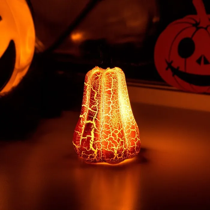 Светодиодная фигура «Камин с тыквой» 6 × 13 × 4 см, пластик, батарейки AG13х3 (в комплекте), свечение тёплое белое