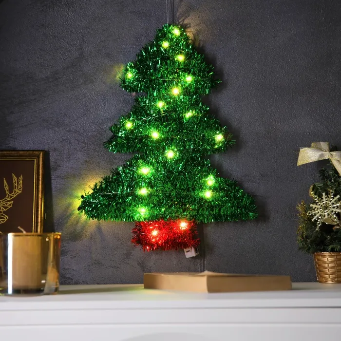 Светодиодная фигура из мишуры «Елочка зеленая» 36 × 28 см, 20 LED, батарейки AG10х3 (в комплекте), свечение тёплое белое