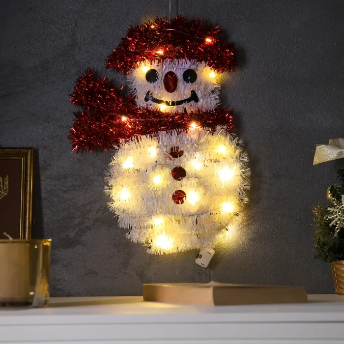 Светодиодная фигура из мишуры «Снеговик» 32×22 см, 20 LED, батарейки AG10×3 (в комплекте), свечение тёплое белое