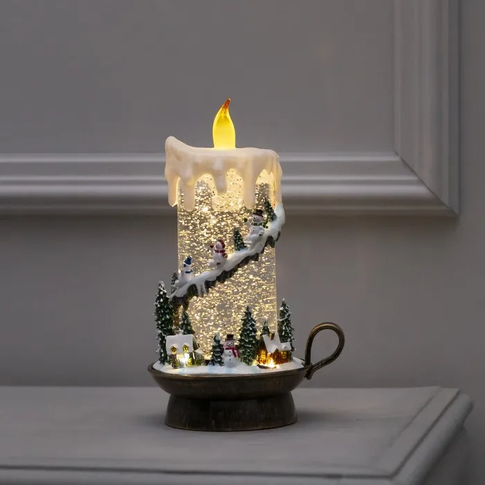 Светодиодная свеча со снеговиками, 14 × 23 × 12 см, пластик, батарейки ААх3 (не в комплекте), USB, свечение тёплое белое