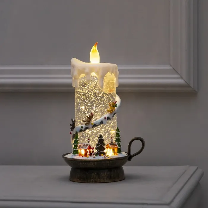 Светодиодная свеча с Дедом Морозом, 14 × 23 × 12 см, пластик, батарейки ААх3 (не в комплекте), USB, свечение тёплое белое
