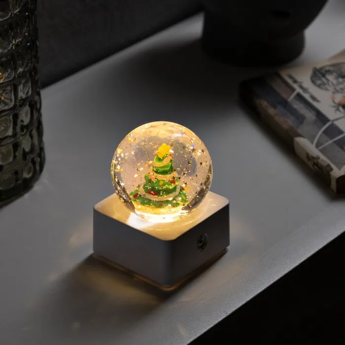 Светодиодная фигура «Шар с ёлкой» 10 × 14.3 × 10 см, пластик, USB, свечение тёплое белое