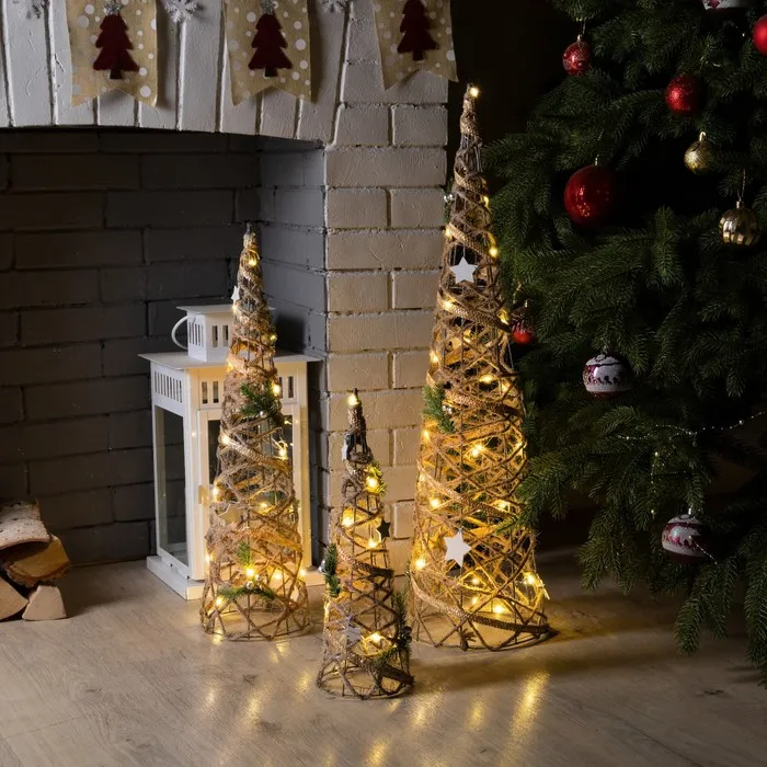 Светодиодная фигура «Конусы плетёные» 40, 60, 80 см, текстиль, металл, батарейки ААх2 (не в комплекте), свечение тёплое белое