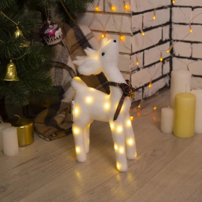 Светодиодная фигура «Олень» 16 × 30 × 9 см, флок, батарейки CR2032х2 (не в комплекте), свечение тёплое белое