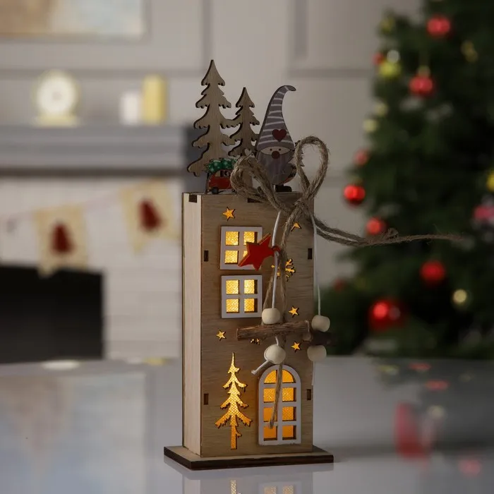 Светодиодная фигура «Фабрика подарков» 7.5 × 22 × 5 см, дерево, батарейки LR1130х3 (в комплекте), свечение тёплое белое