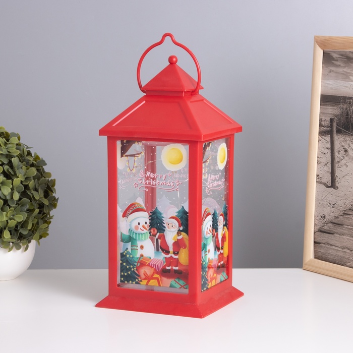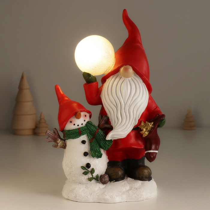 Фигурка светящаяся полистоун «Дед Мороз в красном наряде со снеговиком, с шариком», 15×10.2×23 см