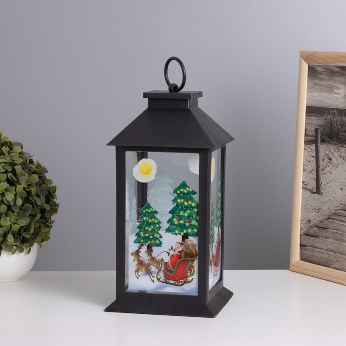 Фигурка светящаяся RISALUX «Санта Клаус на санях», LED-ночник, 3×ААА, чёрный, 14×14×28.5 см